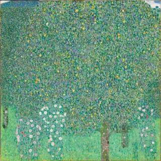 He keskustelevat Klimtistä hänen maalauksensa Ruusupensaita puiden alla. Tätä teosta ei Helsingin näyttelyssä nähdä, mutta se vie suoraan Klimtin taiteen ytimeen. Taulussa Mona näkee räjähdyksen, vaikka se esittää pelkkiä kukkia.